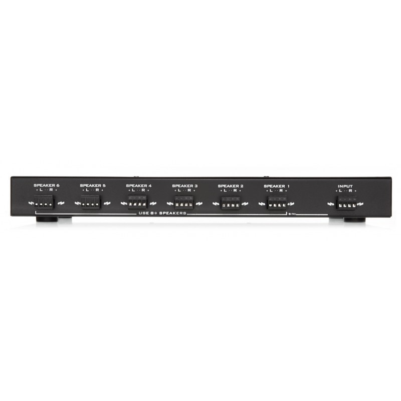 Praktické ovládací prvky na předním panelu rozbočovače umožňují samostatné nastavení úrovně hlasitosti každý pár reproduktorů. Takto můžete jednoduše vytvořit až 6 zón s různou hlasitostí, případně je možné jednotlivé zóny úplně vypnout. Zařízení tak najde své uplatnění v mnoha aplikacích ať již v Hi-Fi systémech nebo v kacelářích, restauracích, případně při ozvučení společenských prostor.