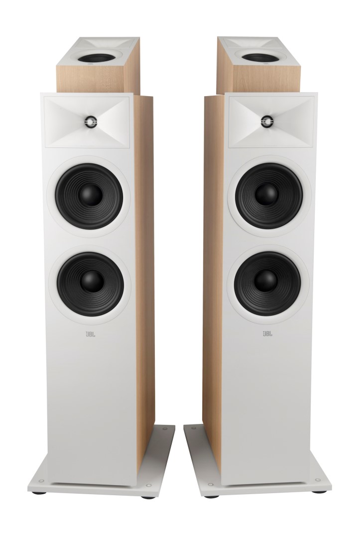 Dva 8" (200 mm) basové reproduktory mají vrstvenou kuželovou polycelulózovou membránu na pryžovém závěsu, vyztuženou kruhovým žebrováním. Díky tomu jsou zárukou precizního podání nízkých frekvencí již od 33 Hz, s charakteristickou JBL kresbou basových tónů a přesnou pevnou konturou, srovnatelnou s mnohem dražšími firemními legendami. Sofistikovaná výhybka pro dvě a půl pásma se stará, aby každému z basových reproduktorů byly přiřazeny mírně odlišné části frekvenčního spektra. Zatímco spodní z reproduktorů je vyhrazen pouze pro basy a má nastaven dělící kmitočet na 1,1 kHz, horní z dvojice reproduktorů sice začíná na stejné nejnižší frekvenci 33 Hz, ale jeho horní dělící kmitočet zasahuje až do vyšších frekvencí, kde přebírá pásmo výškový reproduktor.