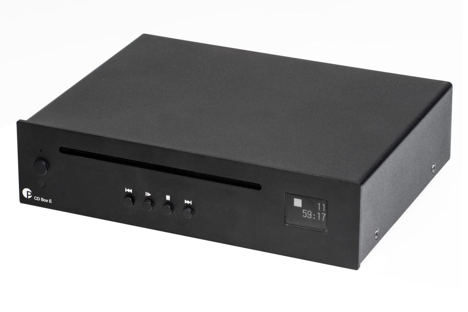 Štěrbinová mechanika je skryta v celokovovém šasy s předním panelem s kartáčovaného hliníku. Kovové pouzdro nejen že dodává zařízení punc luxusu, ale zároveň omezuje vliv elektronického rušení. Tento kompaktní přehrávač je zcela jistě rovnoceným protivníkem všem konkurentům. CD BOX E. Může být skvělým partnerem pro každý audio systém, ale nejlépe vynikne s komponenty ve stejném designu jako je např. zesilovač Pro-Ject Maia S3. Zároveň je do systému možné dokoupit i další mikro komponenty Pro-Ject a vytvořit tak nejmenší plnohodnotný audio systém na světě s opravdovým Hi-Fi zvukem.